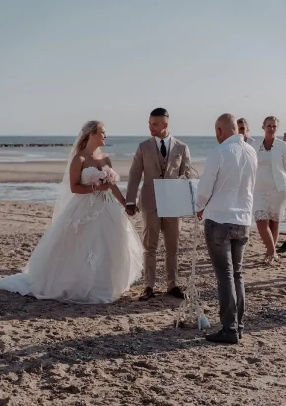 In dit geval zijn jullie niet gebonden aan wettelijke regels en kan je de huwelijksceremonie vieren waar en wanneer jullie dat zelf willen. In veel gevallen wordt er dan gratis getrouwd op het stadhuis en later volgt de ceremonie, met akte, getuige en trouwambtenaar in toga! Niemand merkt het verschil en het biedt oneindig meer mogelijkheden dan dat alles officieel moet. Zelfs buiten Nederland kan ik een huwelijksceremonie verzorgen.