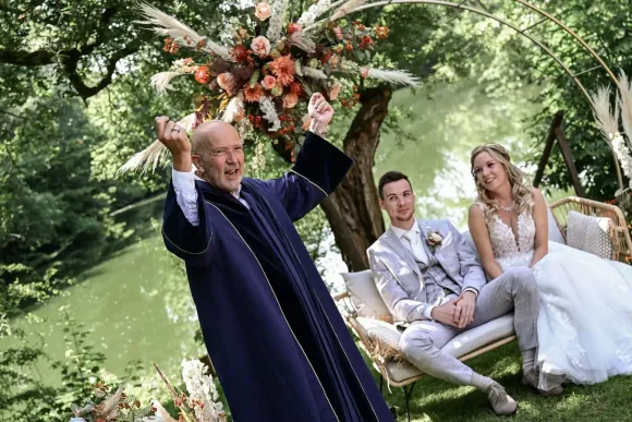 Ronald is professioneel, zoekt interactie met het publiek, en weet de gevoelige snaar te raken. Van het belangrijkste moment van je bruiloft, de ceremonie, maakt hij een onvergetelijk moment: het was een genot om naar zijn speech te mogen luisteren. Onze liefde heeft hij weten om te toveren in een speech die ook nog ruimte overliet voor improvisatie: een genot om naar te luisteren en voor ons een huwelijksceremonie om voor altijd te koesteren.